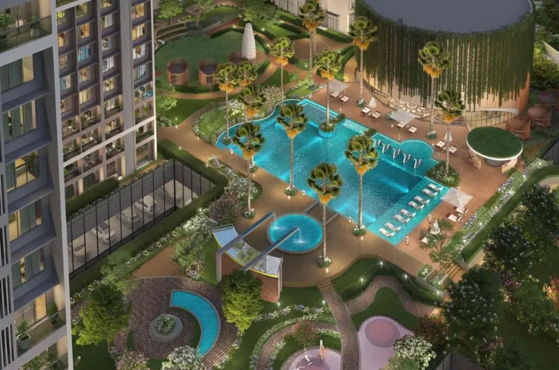 The project is designed as a wellness sanctuary. Unique amenities include an Air Purifying Tower, a Healing Herb Garden & Salt Room, an Icelandic Bath, Lagoon Lounge & Hydro Pool, a Zen Garden, and a dedicated Wellness Spa. It also features a Half-Olympic Size Pool and a CrossFit Gym.