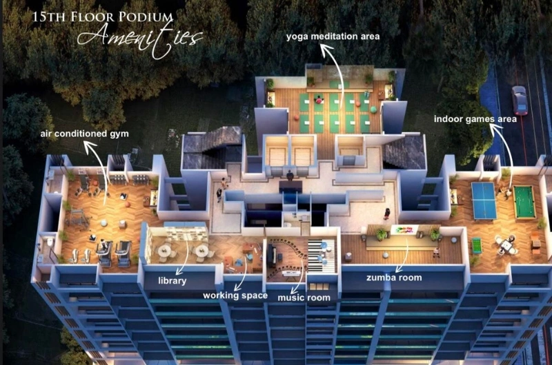 The development is spread across 0.42 acres, featuring a thoughtfully designed high-rise tower with well-planned living spaces.